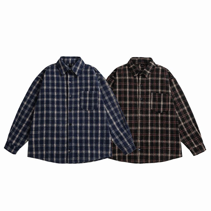 落ち着いたトーンのチェック柄が魅力的なメンズ シャツです。